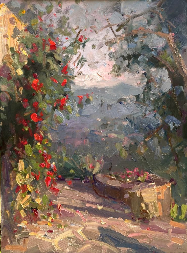 Cat. No. 1231 Pianello Roses, Lunigiana,Italy – 16in x 12in – Oil on Board – 2018